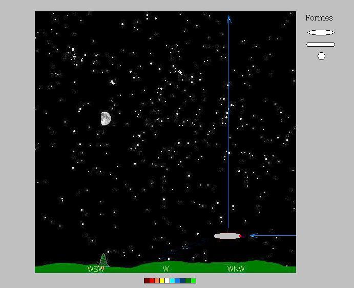 Indiquez sur la vue du ciel générée pour les lieu, date et azimuth, la ou les formes du ou des objets observé(s), leur mouvement.